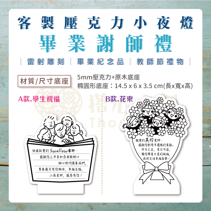 產品說明:壓克力小夜燈(實木底座)-謝師禮